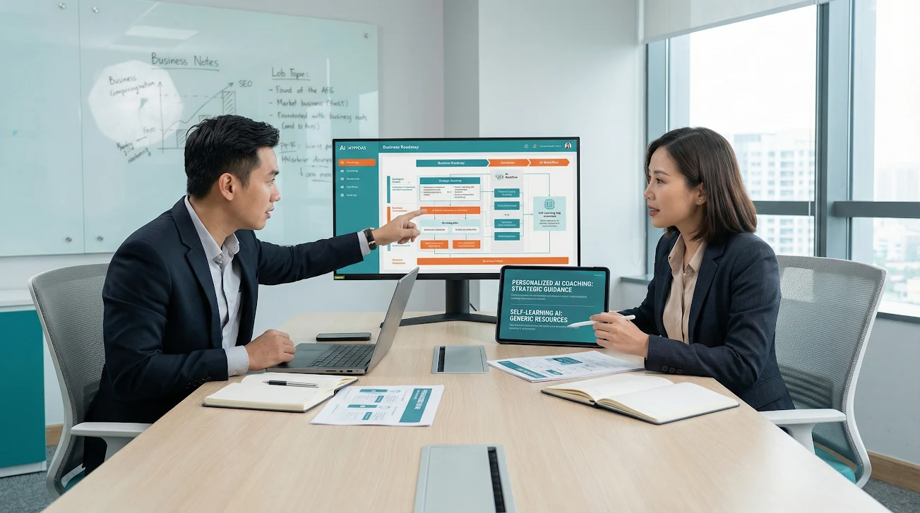 Điểm đáng chú ý là coaching không thay thế hoàn toàn việc tự học. Nó giúp việc học có định hướng hơn và giảm nguy cơ triển khai lệch mục tiêu. Với nhiều lãnh đạo, đây là cách học AI cho doanh nghiệp tiết kiệm thời gian suy đoán và dễ ra quyết định hơn.